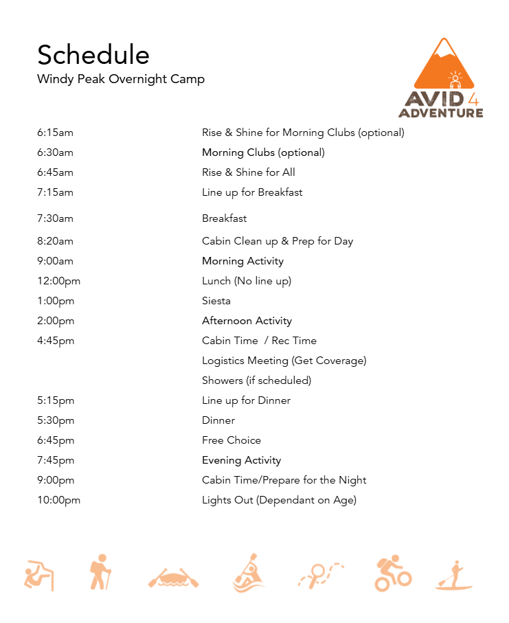Every day is a little bit different, but see below for a typical flow of a day at Overnight Camp!